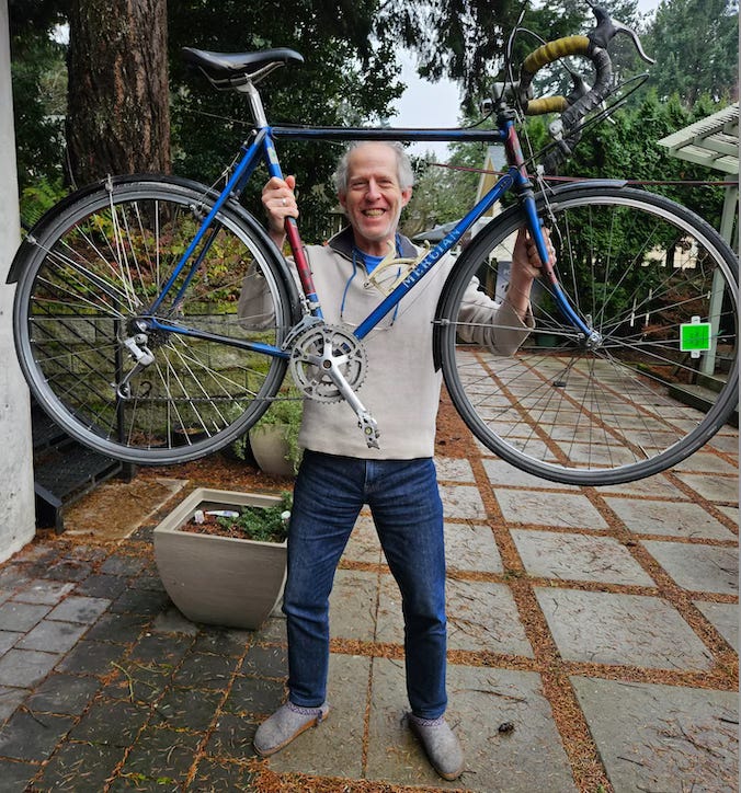 I recently gave away my old bike. It was the end of an era for me. For more than four decades, the lovely bike had served me well, taking me on trips ranging from short hops to the supermarket to an extended trip that covered more than 2,500 miles. I rode it at college, to many, many jobs, to do research on my books, for pleasure, for exercise. I rode it on 105°F plus days in southern Utah, on booger-freezing-cold days in Colorado, in clothing-permeating rainstorms in Seattle, and through the crazed traffic of Boston. More than any other inanimate object that bike helped define me for much of my life.