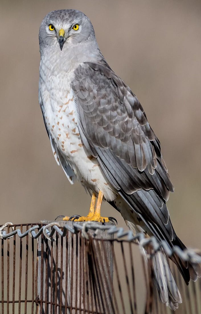 Word of the Week - Harrier - A word with Germanic roots. The first definition in the OED is one who ravages or lays waste or harries (which is defined as making predatory raids). Northern harriers have been called Marsh Hawk, Mouse Hawk, Snake Hawk, Frog Hawk, and Bogtrotter. Alas, there is no Southern Harrier.