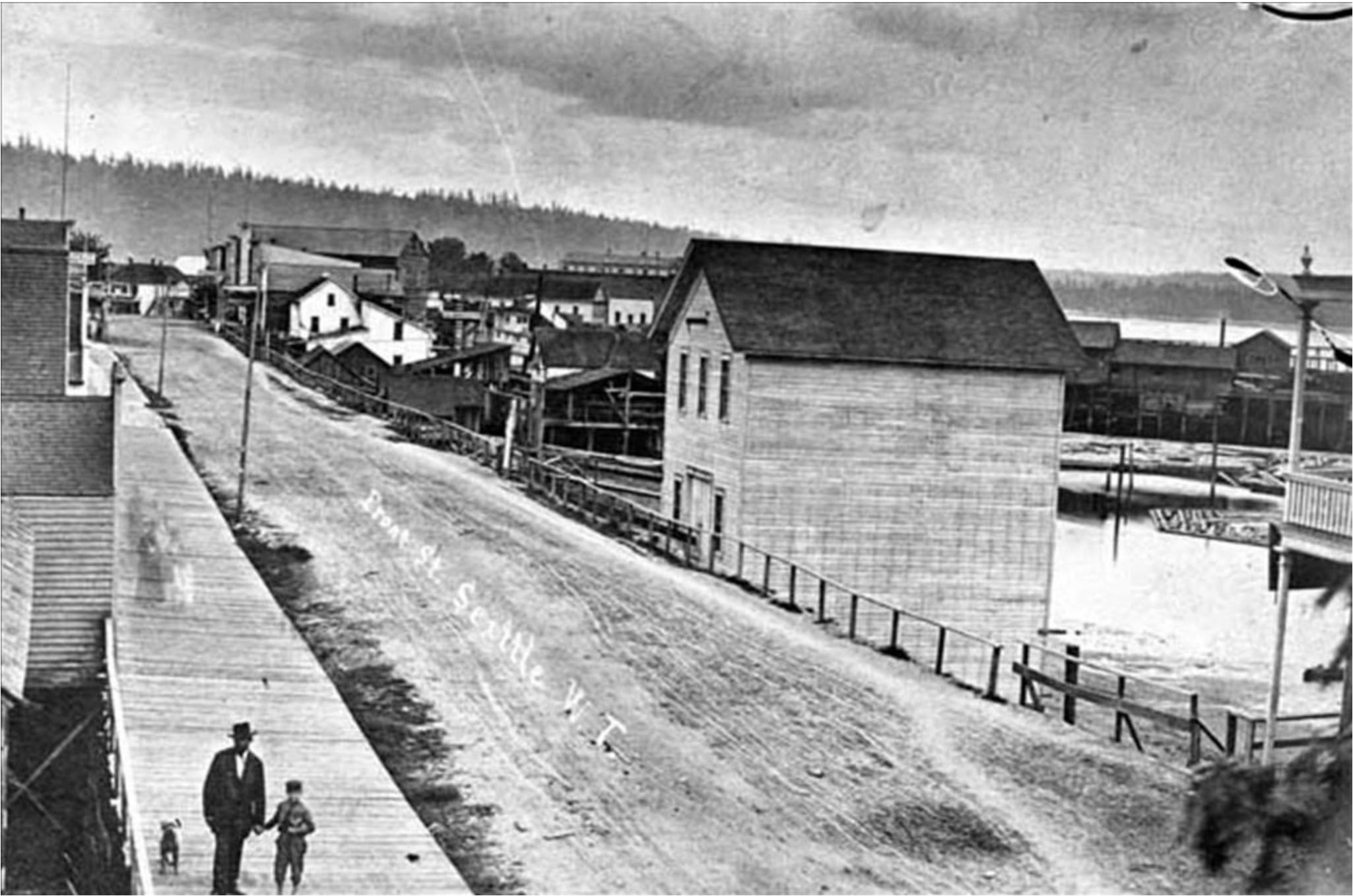 Once local leaders realized that they could tame the topography, they went at it with a passionate zeal. On Mill Street (now Yesler Way) workers made cuts of up to 20 feet as it climbed east and one block south on Washington Street, the men dug up stumps and burned huge logs to push that road further east. Within a few years, the city council passed ordinances for grading Second, Third, Fourth, Madison, Marion, and Commercial streets.