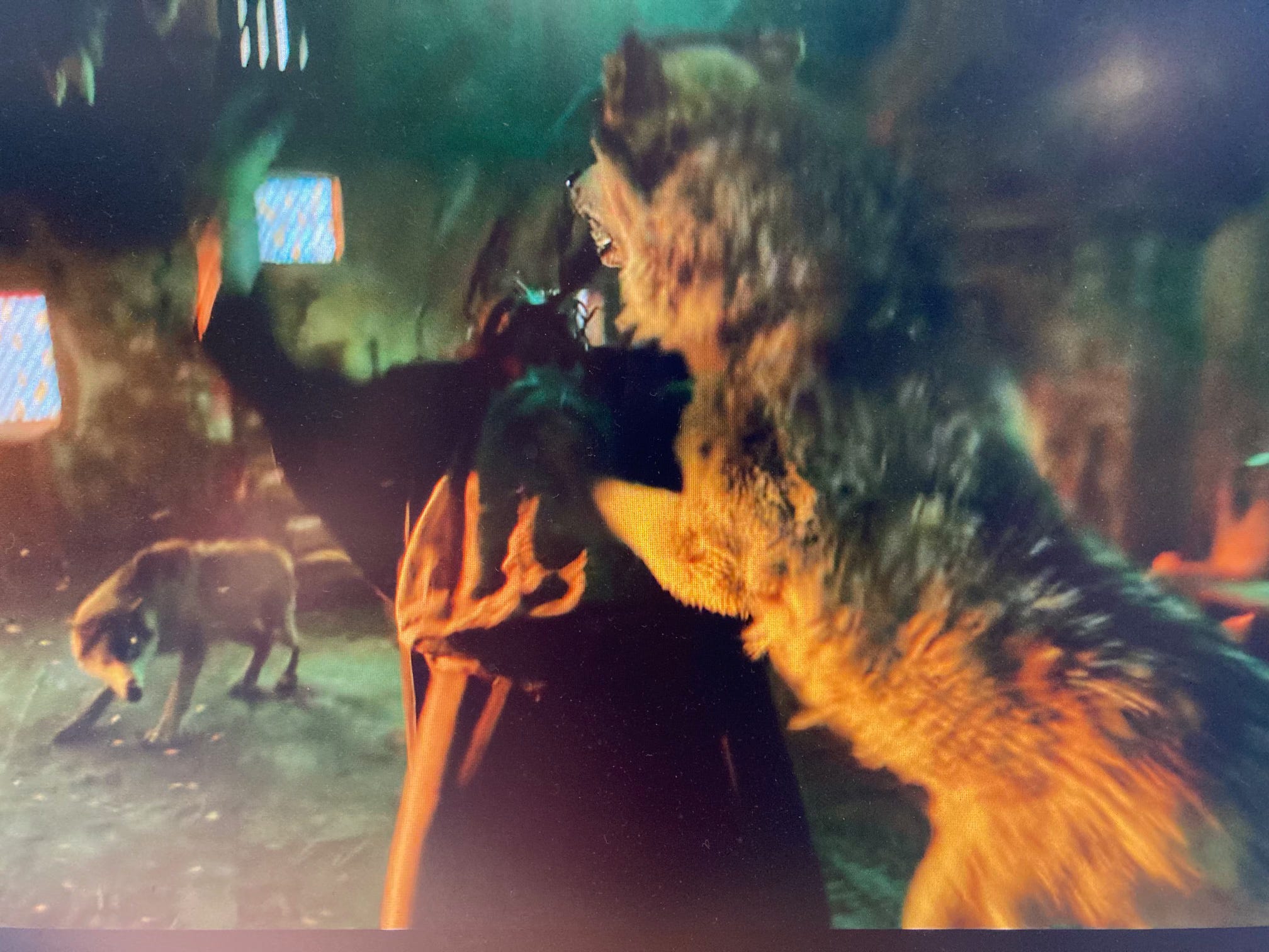 In the movie (spoiler alert), we have a similar scene of connection and bonding between the old man and the monster. But del Toro adds an irrelevant and violent scene of wolves (clearly CGI) aggressively attacking the family’s farm and sheep, followed eventually by the wolves attacking the old man. The scenes are gruesome and gratuitous, as well as an unnecessary perpetuation of the long term and false image of wolves as depraved and wanton killers.