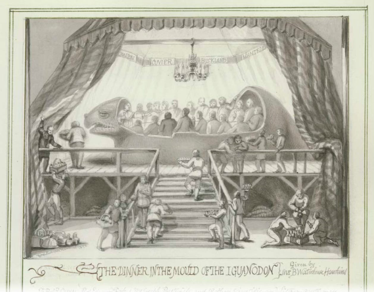 I’ve long been fascinated by Mr. Hawkins, a sort of Zelig for his times. He drew illustrations for Charles Darwin; hosted an infamous New Year’s Eve dinner in a dino, which included Richard Owen; attended the infamous meeting of the first presentation of Darwin’s and Alfred Russel Wallace’s theory of natural selection; worked on the first life-sized dinosaurs in the USA (only to have them destroyed by nefarious means); and still had time to be a bigamist. About a decade ago, I wanted to write a book titled The Man Who Invented Dinosaurs, but no one was interested so I abandoned the project.