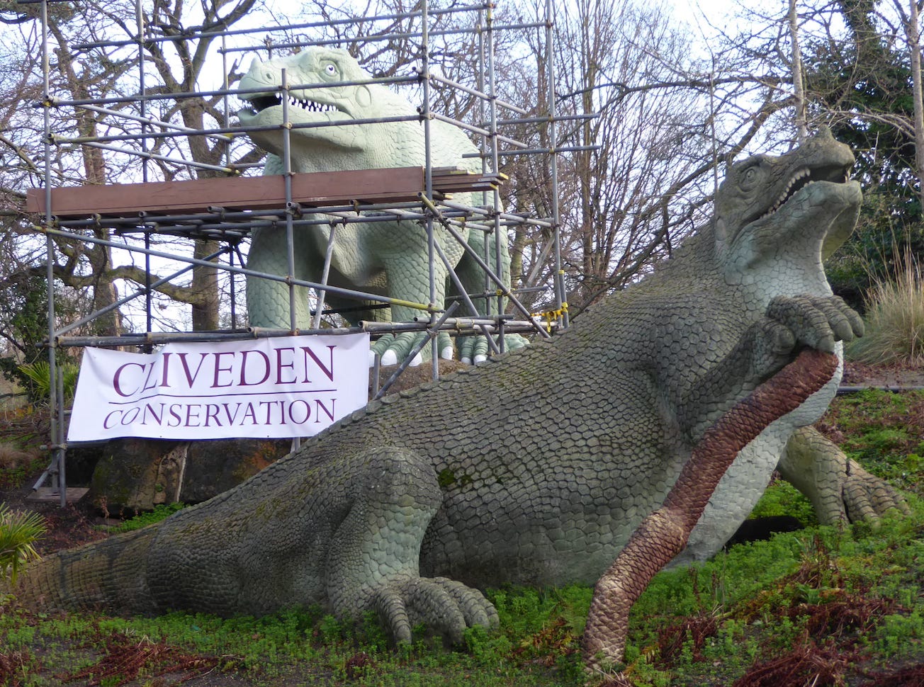 One can still see Hawkins’ antediluvian beasts at the Crystal Palace in London, as the photograph below shows. Fortunately, most of them have been restored to their former beauty. Anatomically incorrect—primarily because Buckland, Owen, and others in the first generation of paleontologists lacked enough specimens—the Crystal Palace Megalosaurus were scientifically up-to-date and must have been exciting to see for those who had read Bleak House. Even for those who hadn’t, the Crystal Palace dinosaurs were stunning, and the beginning of the world’s long-term love affair with all things dinosaurian.