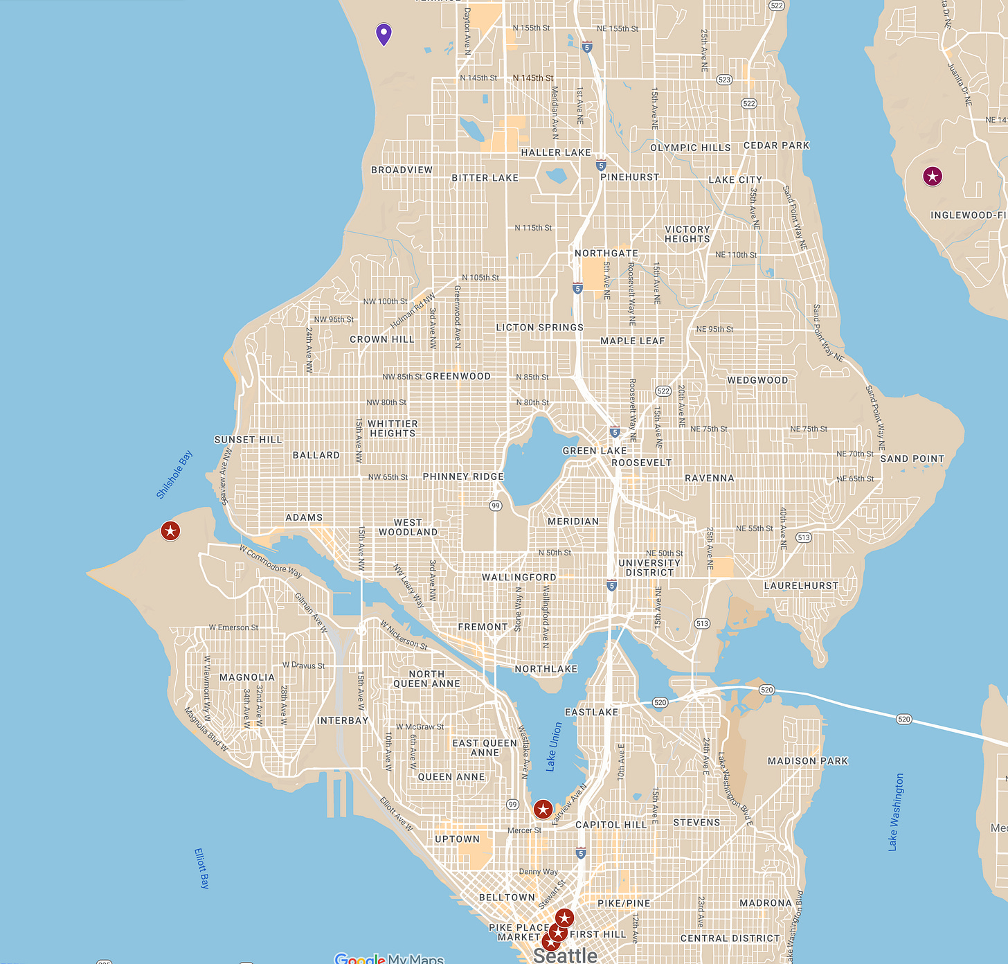 Here are the locations of the ones I know of: Kirkland, Discovery Park, MOHAI, Convention Center lobby, Cobb Building entry, and the underground concourse between Union Square and the Rainier Tower (the building that arose on the site of the White-Henry-Stuart block. There also used to be one at a KOA in Kent but that site sold and I was told that the figure ended up in a motorcycle shop but I haven’t been able to confirm that story.